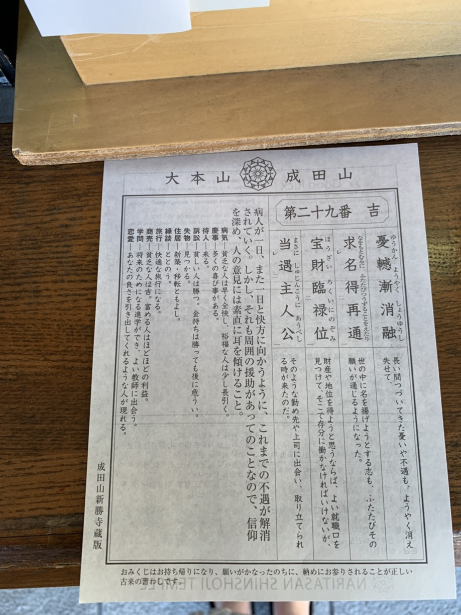 成田山のおみくじの順番は