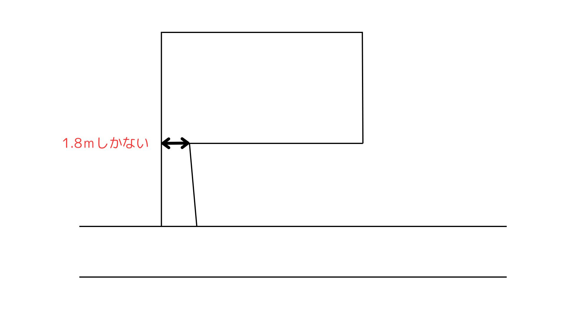 接面している箇所が2mあっても、途中で2mを切った場合は建物を建築することができません。しかし、実際10センチや20センチ狭くなっても体感ではわからないため、気が付かない方も多いです。