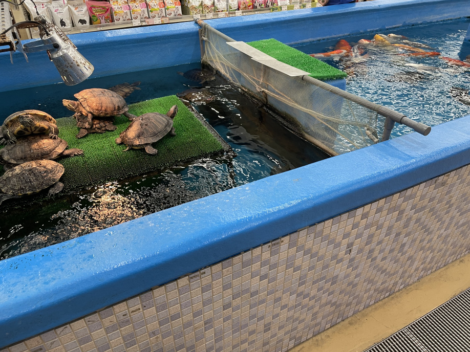 「めっちゃ亀と鯉およいでる!!」